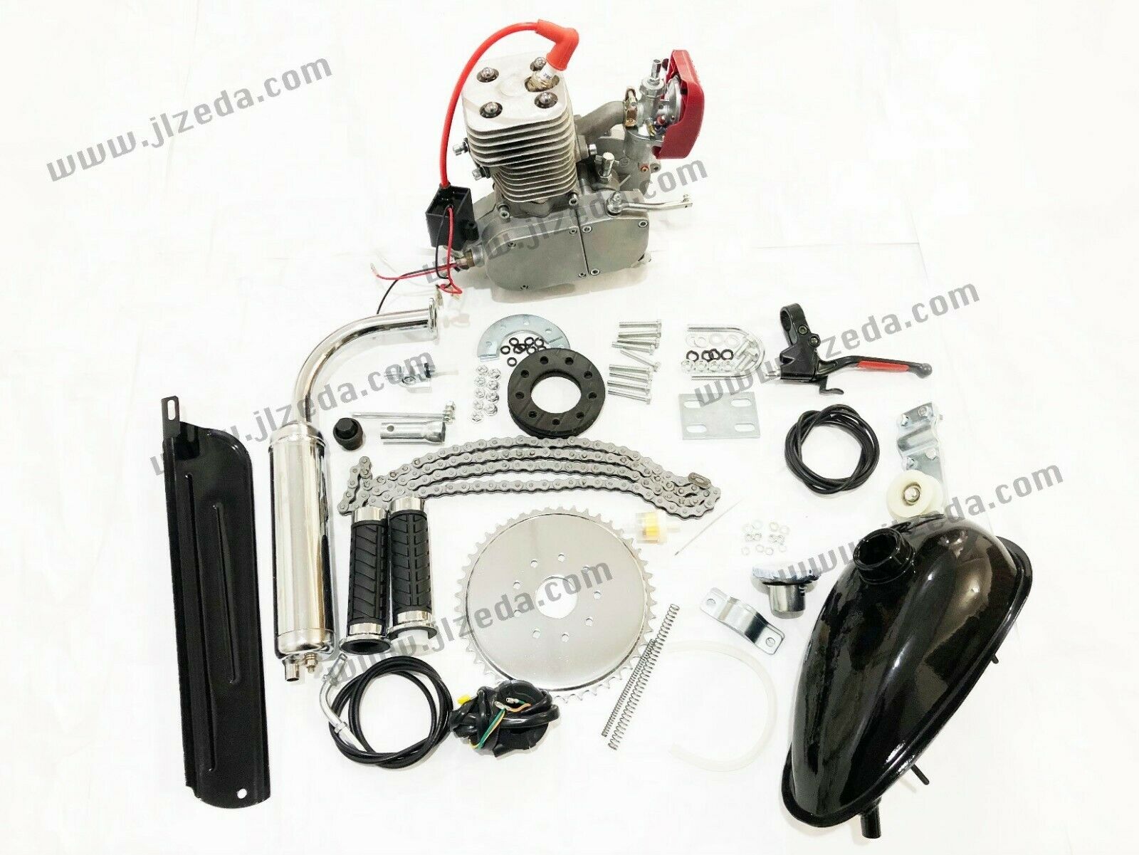 This bike engine kit includes all of the necessary items to turn your pedal bicycle into a motorized speed demon